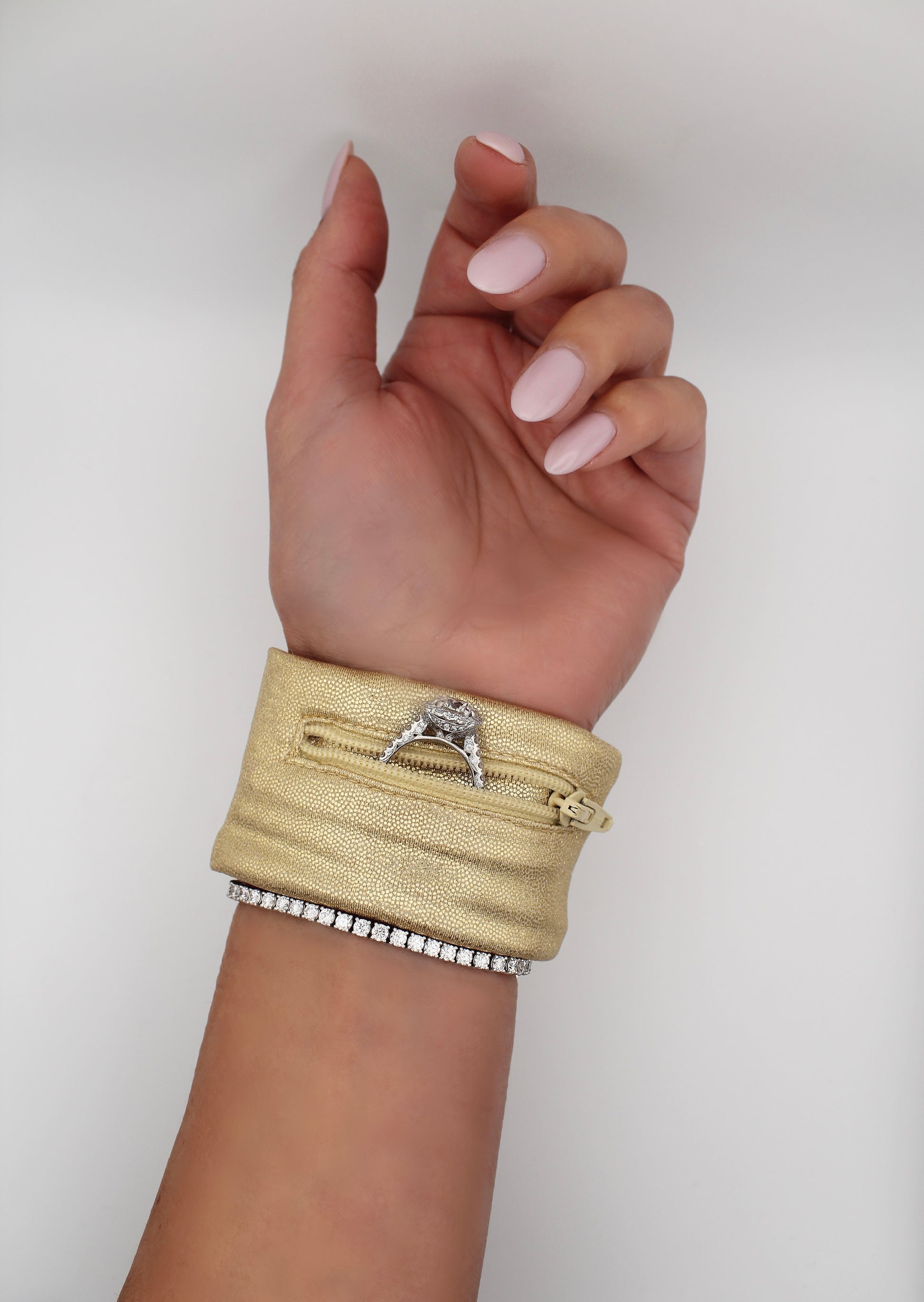 Crafted from premium stretch material, it adapts comfortably to your wrist while offering a discreet pocket to store your rings safely. From lifting weights and hitting the tennis court to exploring new cities, your jewelry stays scratch-free, damage-free, and worry-free.